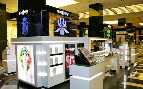 二、化妝品展柜設計,唯有布局合理性:依據消費者的心理要求和需求習慣,針對同一品種或同一系列的化妝品展柜應在同一區域展現。